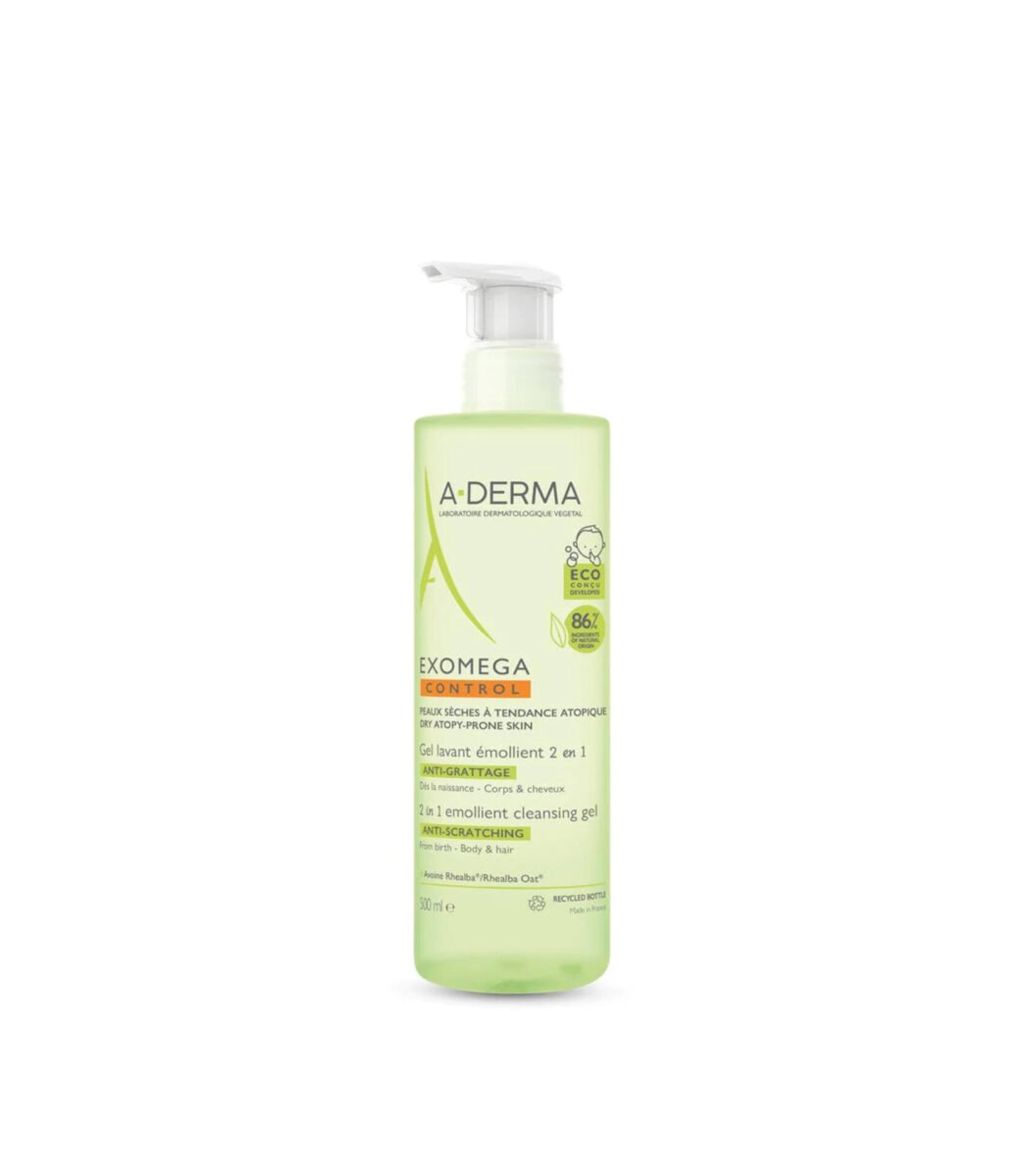 EXOMEGA CONTROL Emollient Cleansing Gel cleanses (face, body, hair), soothes and protects dry skin prone to atopic eczema from birth. Its biodegradable formula containing 86% ingredients of natural origin, helps soften children’s skin.