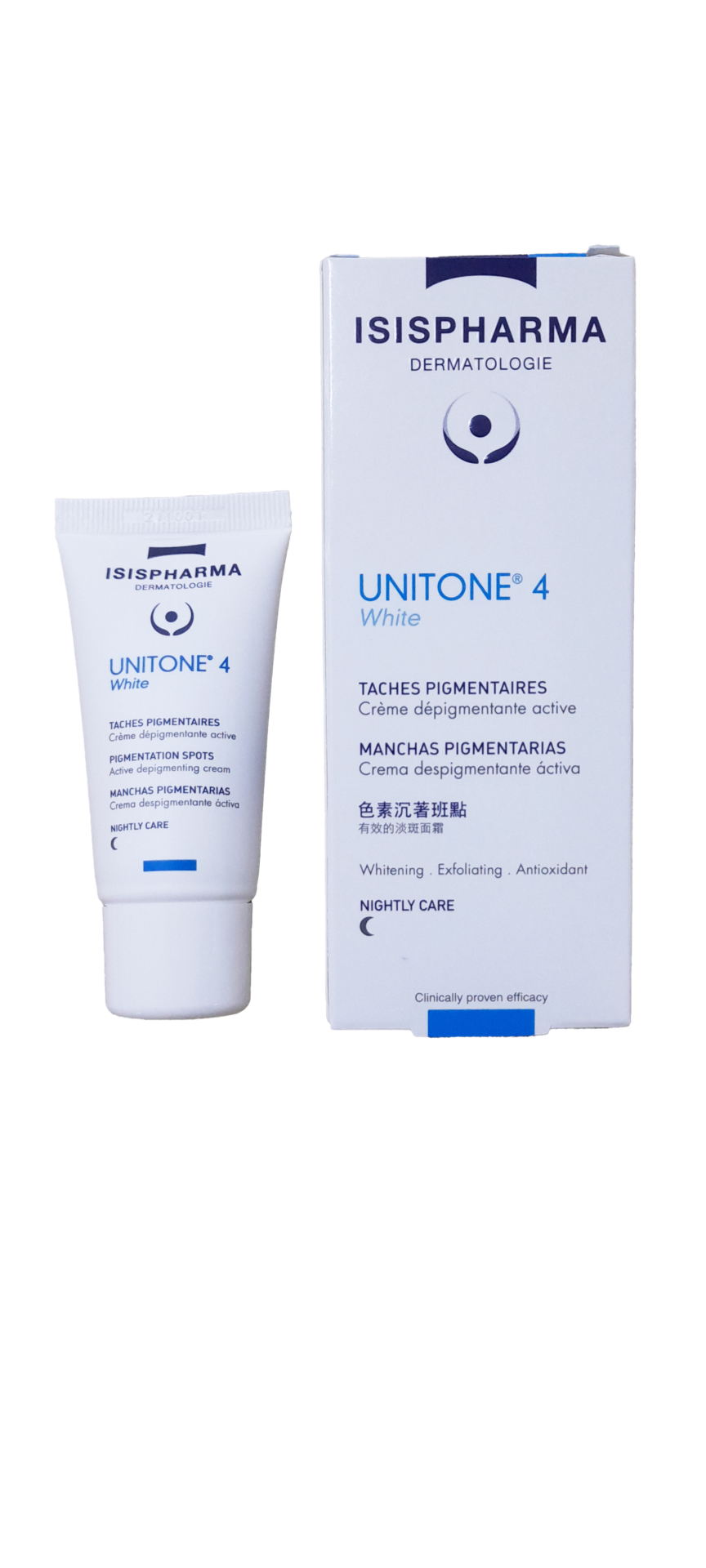 Unitone 4 White is a night cream lightening skin discoloration, with its concentrated active complex, 4 White Unitone reduces the excessive production of melanin which is responsible for pigmentation spots.